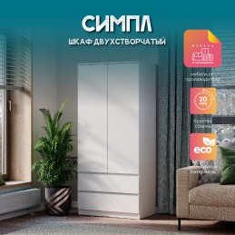 Шкаф двухстворчатый «Симпл» (ШК-03) — минималистичный двухстворчатый шкаф станет хорошим дополнением как к классическому, так и к современному интерьеру. В двух выдвижных ящиках удобно хранить обувь или белье. За распашными дверцами размещена штанга для хранения верхней одежды.
