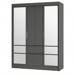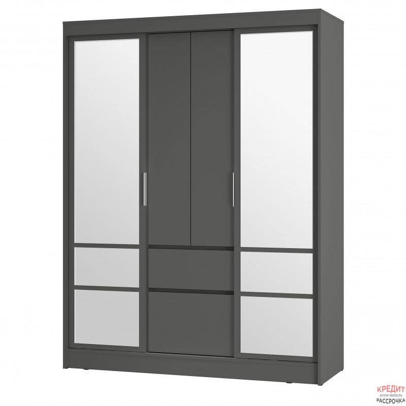 Шкаф-купе «Симпл» (ШКК-06) — вместительная и эстетичная модель для тех, кто предпочитает лаконичные интерьерные решения. Шкаф оснащен удобными ящиками и полками, а также пространством для вертикального хранения вещей. Вам не придется покупать большое зеркало, ведь фасад этой модели оснащен зеркалами с еврокромкой в комплекте, которые клеятся на фабрике. Направляющие у крайних створок СТ.