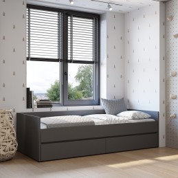 К данной модели кровати можно отдельно приобрести матрас-трансформер.«Симпл» - это современная коллекция функциональной мебели. В ней собраны все необходимые предметы для интерьера спальни, гостиной, детской комнаты, прихожей: шкафы, кровати, комоды, столы, тумбы. Коллекция полностью соответствует своему названию. Простой и стильный дизайн покорит ценителей минимализма. Отсутствует лицевая фурнитура. Мебель, выполненная в спокойных оттенках «белый» и «графит», идеально дополнит как классический, так и современный интерьер. Полноценный набор мебели позволяет экспериментировать с пространством.Интегрированный срез на фасадах. Мебель этой коллекции оснащена надежными опорами из безопасного пластика – это позволит не только комфортно проводить влажную уборку, но и уберечь напольное покрытие от повреждений.