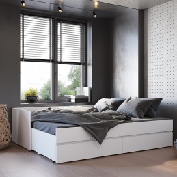 Кровать-трансформер из коллекции "Симпл" - это практичная и комфортная модель для современной спальни. Простой и стильный дизайн покорит ценителей минимализма. Данная модель удобна в использовании в небольших помещениях - при необходимости ее можно раздвинуть и получить дополнительное спальное место. Кровать оснащена выкатными ящиками, в которых легко размещается постельное белье, текстиль и другие вещи, которым не нашлось места в шкафу.