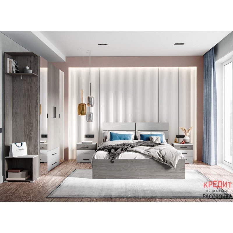 Коллекция Теана - мебель в ультрасовременном стиле. Данный комплект сочетает все необходимые для комфортной спальни модули. Вместительный двухдверный шкаф с двумя ящиками и штангой, пенал с зеркальным фасадом и комплектом полок, угловое открытое завершение с сиденьем - пригодятся для хранения одежды на плечиках и вещей в сложенном виде. Спальную зону легко организовать с помощью двуспальной кровати и двух прикроватных тумб. Основание кровати входит в комплект. Матрас приобретается отдельно. Особенности материал: ЛДСП/МДФ цвет: Ясень анкор темный/Мрамор лайт трендовый дизайн хорошая вместимость разноплановое наполнение модулей надежные комплектующие