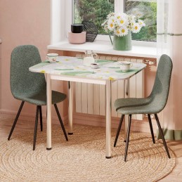 Стол с фотопечатью на металлических хромированных ножках - универсальный современный предмет кухонной мебели.
