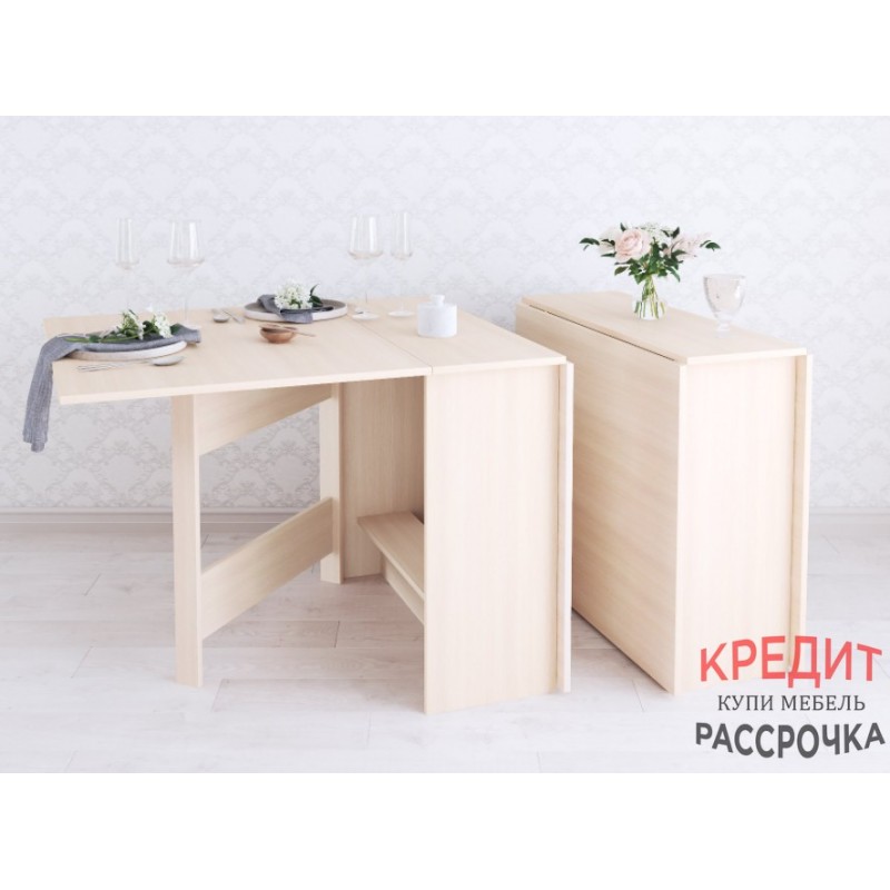 Раскладной стол для кухни - не прихоть, а скорей необходимость в малогабаритках и квартирах-студиях, где каждый метр важно использовать рационально. Данная модель имеет 3 положения: полностью сложенный, разложенный наполовину и полностью разложенный. Модель установлена на пластиковые подпятники, предохраняющие напольные покрытия от повреждения, а значит Вам не нужно бояться поцарапать пол.