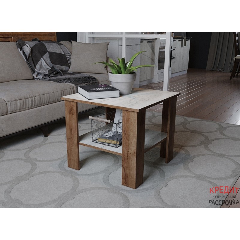 Журнальный стол Консул-9 - компактное решение для гостиной в современном стиле. Выполнен в контрастном декоре, имитирующем древесный рисунок двух оттенков. Рекомендуем использовать стол строго по назначению: не становиться и не садить на него.