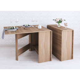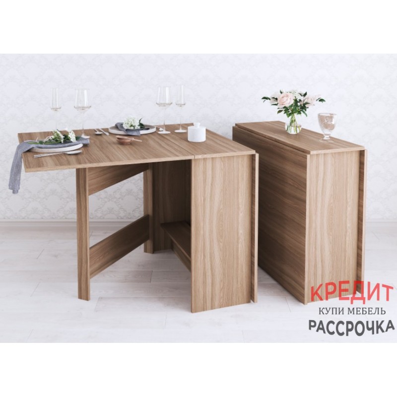 Раскладной стол для кухни - не прихоть, а скорей необходимость в малогабаритках и квартирах-студиях, где каждый метр важно использовать рационально. Данная модель имеет 3 положения: полностью сложенный, разложенный наполовину и полностью разложенный. Модель установлена на пластиковые подпятники, предохраняющие напольные покрытия от повреждения, а значит Вам не нужно бояться поцарапать пол.