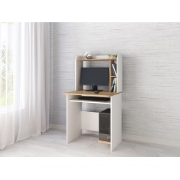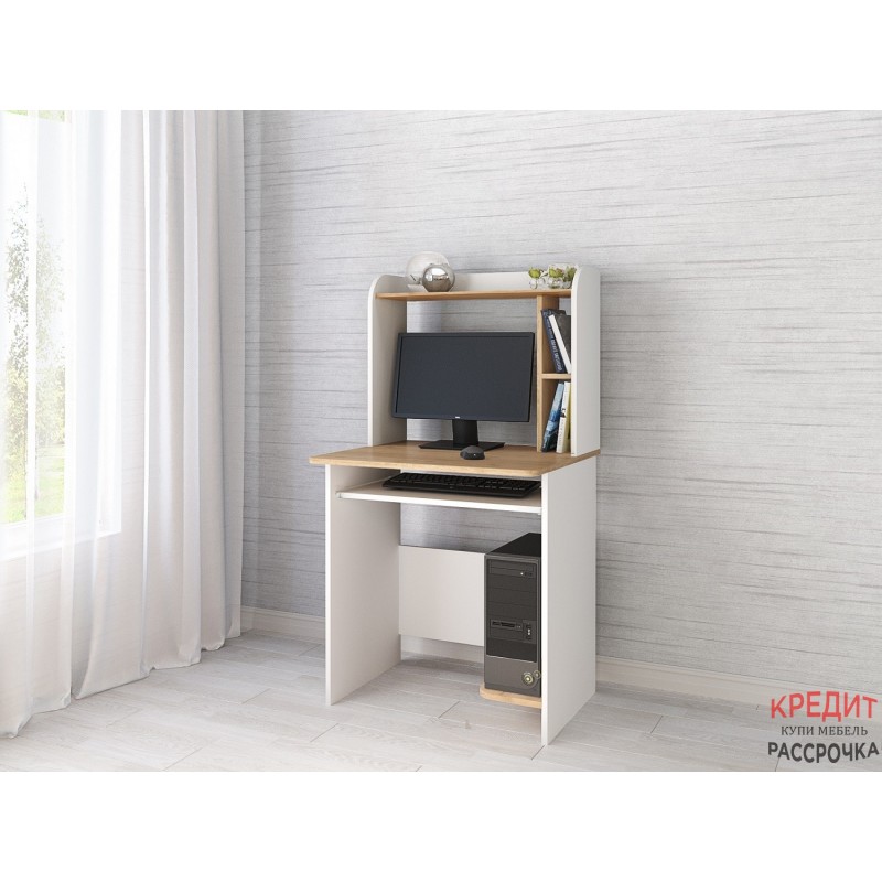 Мечтаете о компактном компьютерном столе с небольшой системой хранения? Стол Грета-1 будет как нельзя кстати! Столешница шириной 70 см позволит организовать рабочую зону даже в малогабаритном помещении и разместить ноутбук или стационарный компьютер. Для установки процессора предусмотрена открытая полка снизу. Выдвижная панель для клавиатуры имеет роликовые направляющие. Опоры стола оснащены пластиковыми подпятниками, которые защищают напольное покрытие от деформации. Модель оборудована функциональной надстройкой с открытыми полками для хранения книг, органайзера или других мелочей, которые необходимо иметь под рукой во время работы. Особенности декор дуб крафт золотой/белый компактный размер роликовые направляющие на полке надстройка с отрытыми нишами пластиковые подпятники сборка не универсальная высота от пола до столешницы - 75 см