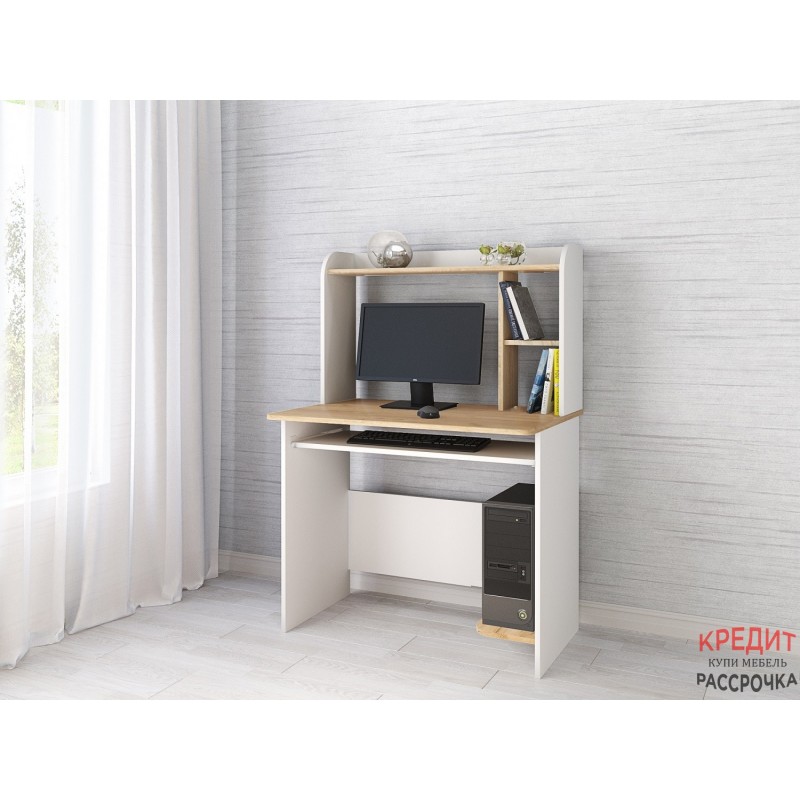 Модель компьютерного стола Грета-2 подойдет всем, кому для работы необходим не только компьютер, но и просторная столешница. Ее ширина в 90 см позволит Вам комфортно располагаться за столом, не стесняя движений, а скругленные углы обеспечат безопасность. Выдвижная панель для клавиатуры установлена на роликовые направляющие. Опоры стола имеют пластиковые подпятники, предохраняющие напольное покрытие от повреждения. Функциональная надстройка пригодится для хранения органайзера, документов и книг.