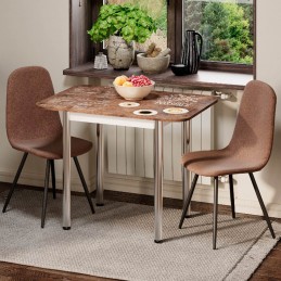 Стол с фотопечатью на металлических хромированных ножках - универсальный современный предмет кухонной мебели.