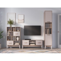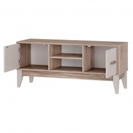 Многофункциональная тумба под ТВ «Скандика» — универсальная модель для современной гостиной, которую отличает минималистичный дизайн и оптимальное сочетание открытых и закрытых зон хранения. Две вместительных полки за дверцами и две открытых полки позволят разместить всю нужную технику.
