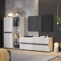 Коллекция «Мрия» — это органичное сочетание классических и современных элементов в дизайне мебели. Оттенки «бетон пайн светлый» и «графит» создают красивый контраст, который привнесет гармонию в интерьер. Однотонные горизонтальные геометрические вставки придают многослойность коллекции.