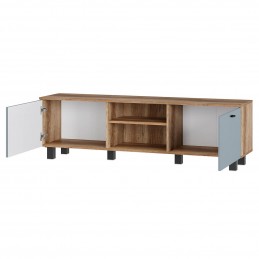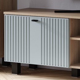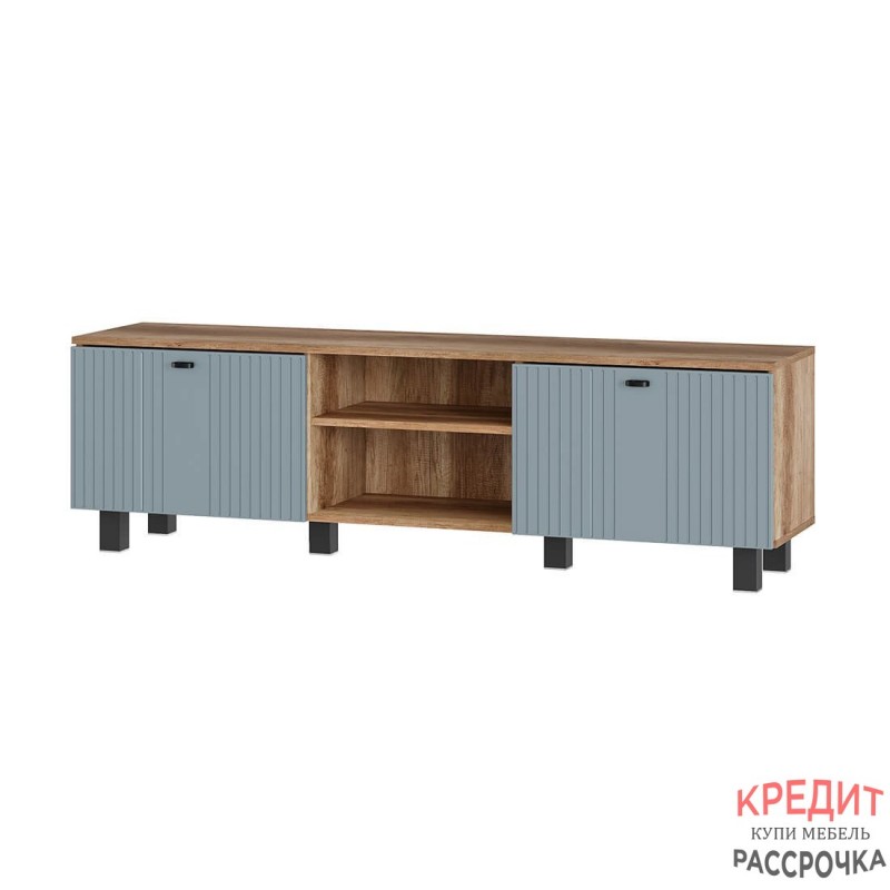 Тумба под ТВ "Олива" выполнена из качественной ЛДСП в цвете "дуб каньон", а фасады отделаны МДФ цвета "шарли бриз". На столешнице тумбы поместится телевизор практически любого размера, а в нишах можно хранить необходимую технику.