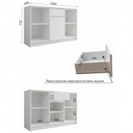 Высота - 770 мм.Ширина - 1204 мм.Глубина - 404 мм.