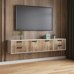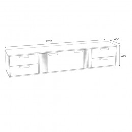Особенности: ЛДСП Белый с тиснением «Древесные поры» МДФ ПВХ Дуб Канадский петли без доводчика «Boyard» шариковые направляющие максимальная распределенная нагрузка на верхнюю крышку тумбы - не более 15 кг Габаритные размеры в (ВхШхГ): 425x2202x400 мм
