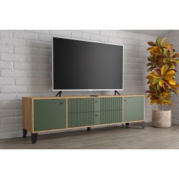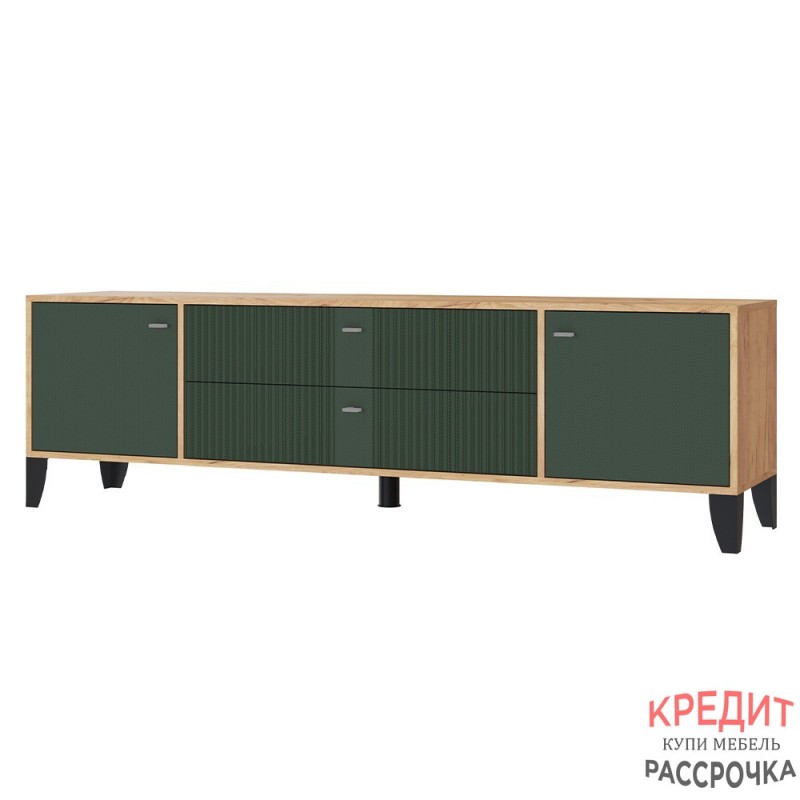 Тумба под телевизор Парус-10, Дуб крафт золотой, Карбон дарк грин