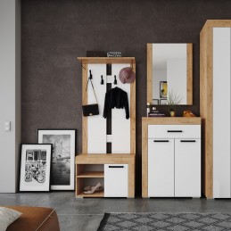 Открытая вешалка - незаменимый предмет мебели в любой прихожей, особенно в малогабаритной. Вешалка из коллекции Галант выполнена в трендовом декоре для ценителей практичных, но функциональных вещей. На крючках Вы с легкостью разместите верхнюю одежду, которой пользуетесь чаще всего. А на открытой полке - сезонные аксессуары или коробку с вещами. Особенности современный дизайн надежные крепления возможность комбинировать с обувницей или тумбой из данной коллекции 4 стильных и прочных крючка