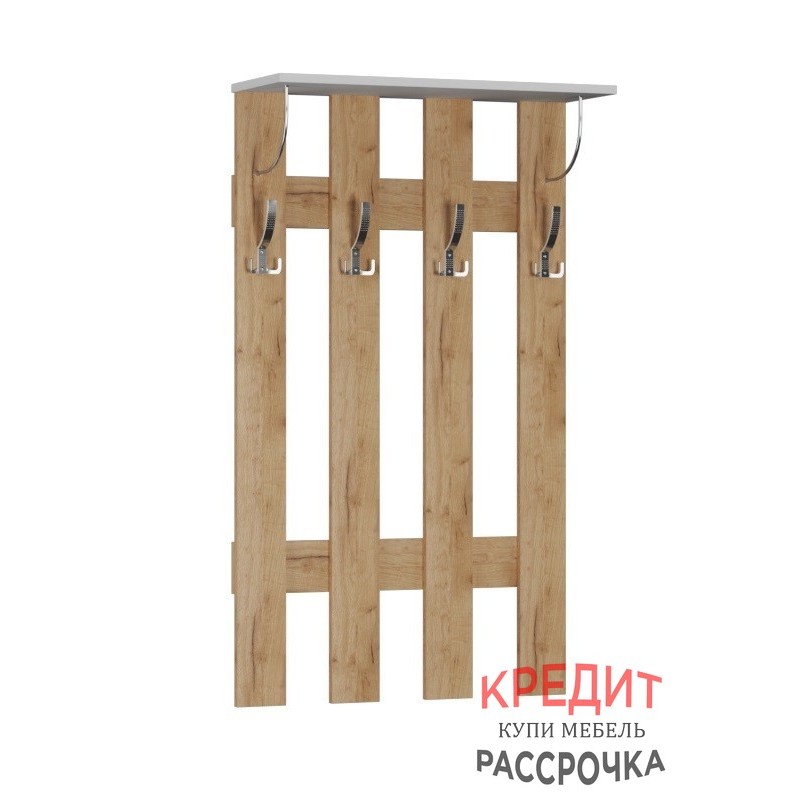 В поисках практичнойвешалки для Вашей прихожей обратите внимание на модель из коллекции Ямайка. Вешалка состоит из панелей ЛДСП, соединенных между собой надежными креплениями, 4-х крючков и открытой полки-антресоли. Это отличное решение для малогабаритных помещений, где не хватит места полноценной системе хранения. Вешалка подойдет для верхнейодежды ежедневной носки.