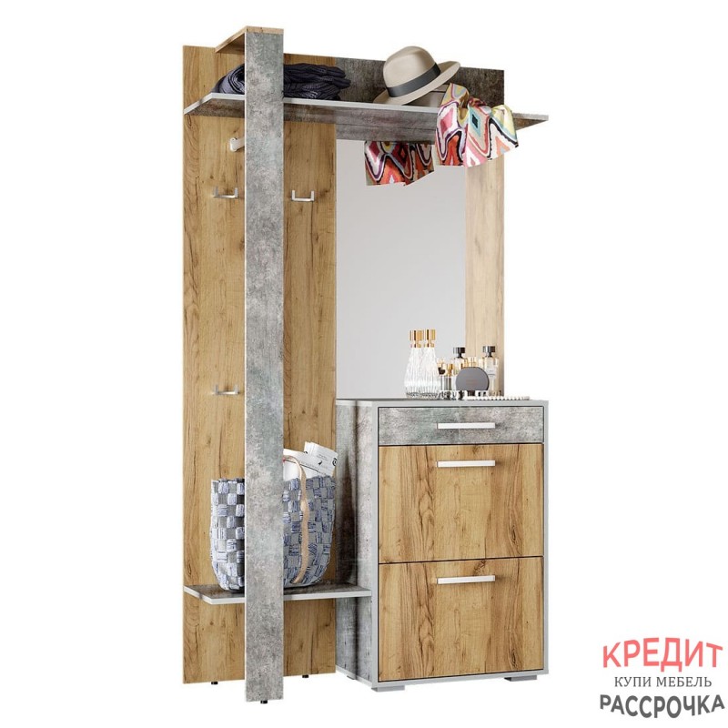 Благодаря Прихожей "Кензо" можно организовать удобную и продуманную систему хранения даже в небольшом помещении. На открытой панели со штангой, крючками и полками найдется место для верхней одежды, сумок, шарфов и зонтов. Для обуви предусмотрены выдвижные ящики. Ключи и прочие мелочи удобно держать на небольшом столике выше. Поправить прическу, головной убор или одежду можно благодаря навесному зеркалу, которое, к тому же, визуально расширяет пространство.