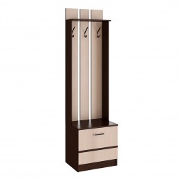 Модель Сакура идеально подойдет для небольшой прихожей. Изделие включает в себя открытые крючки для одежды, верхнюю полку для головных уборов и аксессуаров и нижнее отделение для хранения обуви, которое спрятано за дверцу. Прихожая выполнена из высококачественной ЛДСП контрастных цветов венге и лоредо. Красивое и практичное решение по лучшей цене — это прихожая Сакура вешалка СВ-01в компании «Семья Мебелони».